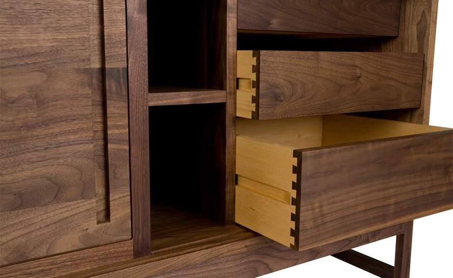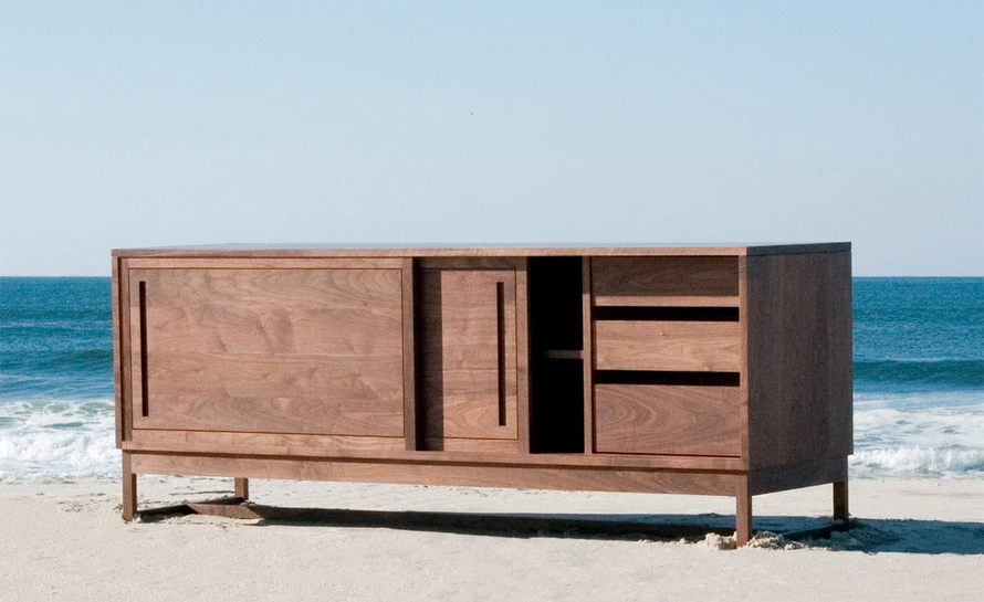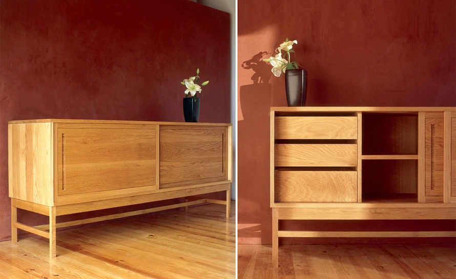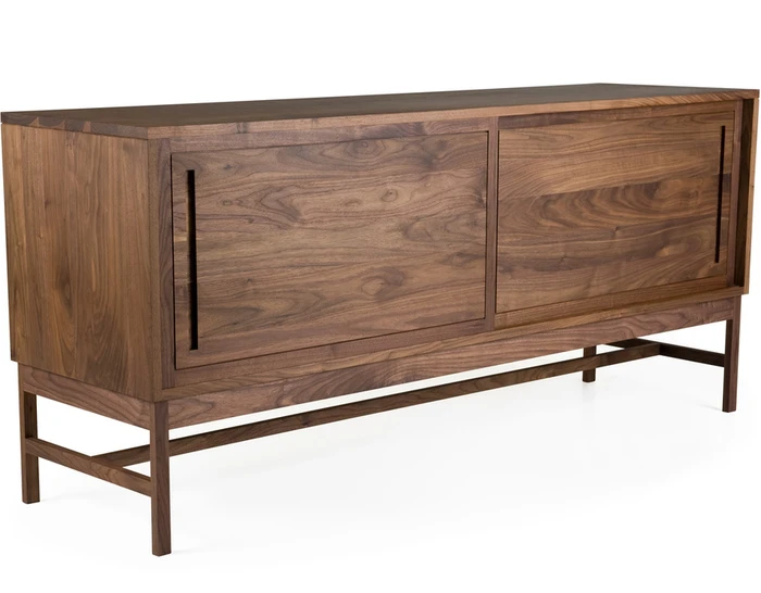 The 006 tall sideboard is offered in walnut, oak, or ash in a range of finishes. Some assembly required.