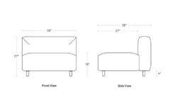 9 yard armless lounge chair: 36″ w | 36″ d | 27″ h | seat: 16″ h | 27″ d | legs: 4″ h