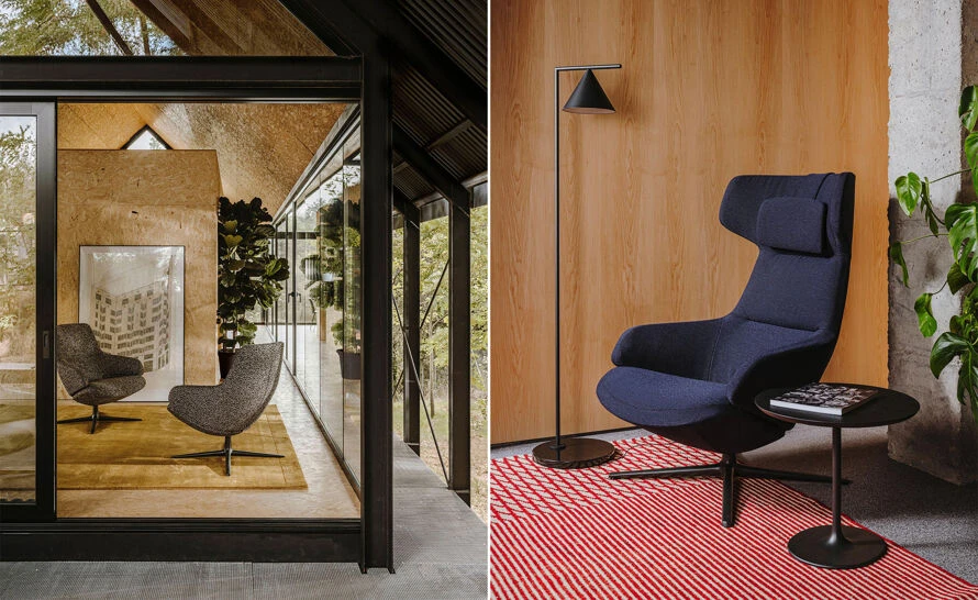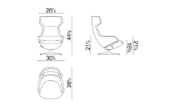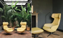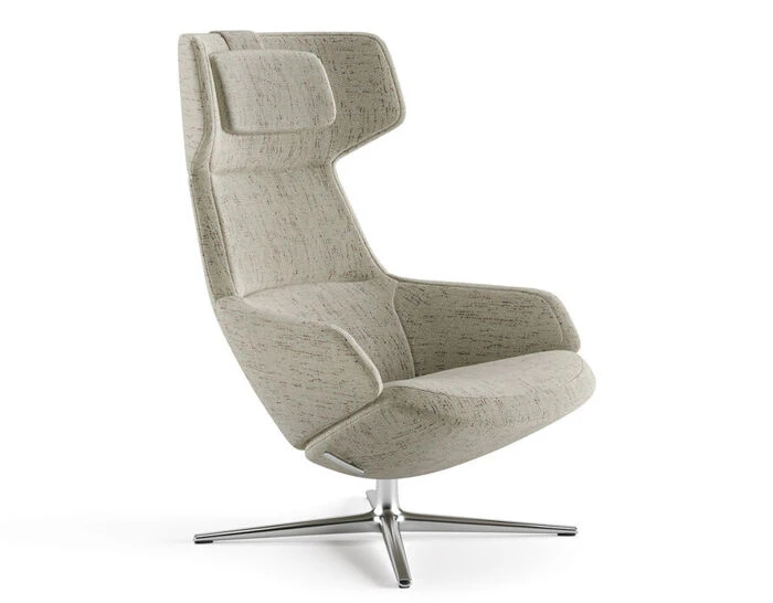 Ergonomic comfort and sustainability are the heart of the Aston Club project. The internal components of this product line, made of post-industrial recycled plastic, can be fully disassembled for reuse or recycling of all of its materials. Aston Club’s welcoming structure is an invitation to relax and makes it suitable for use in offices, hotels or residential environments. The collection includes a lounge chair, available in two different backrest heights, which can be combined with the matching footrest. Aston Club is available fully upholstered in fabric, coated fabric or leather.