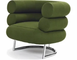 Bibendum is one of a kind. Nowhere in the history of design will one find an armchair that compares to this. It is captivatingly harmonious despite its size and unites a majestic impressiveness with charm and esprit like no other armchair. Eileen Gray underscored the character of her endearing parlor lion with twinkling irony, she named it after the Michelin man, whose form this armchair calls to mind.