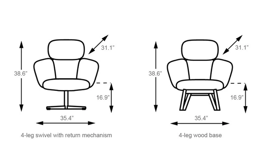 bras highback 4-leg swivel base: 31.1″ d | 38.6″ h | 35.4″ w | seat: 16.9″ h