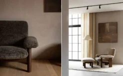 Scandinavian mid-century design aesthetics and Brazilian Modernism meet on the low-lying Brasilia Lounge Chair. The luxurious armchair-lounge chair hybrid offers unparalleled sitting comfort thanks to its robust frame and soft upholstery. Characterized by its stout and sturdy legs, made using traditional joinery techniques, and exaggerated armrests and cushioning seat and backrest, upholstered in a range of soft fabrics, it creates a sense of comfort and ease in any setting.