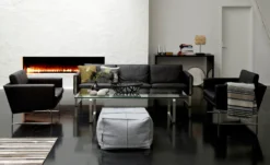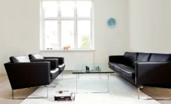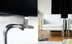 CH101 is hand made on a solid beech inner frame with polished stainless steel legs, visible frame and armrest fronts. Cushions are fully upholstered on all sides, built around a foam core wrapped in European down and foam granulate. This sofa series is completed by sofas & tables of various size options.