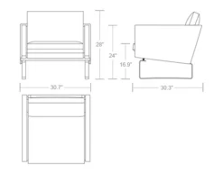 28″ h | 30.3″ d | 30.7″ w | seat: 17″ h | arms: 24″ h