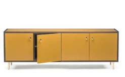 The Multiflex storage pieces are available in 60″ lengths and 20″ depths with either 29″ or 21″ heights. They feature a 3/4″ multi-ply plywood case, 1/2″ multi-ply plywood drawer boxes, 3/4″ multi-ply plywood drawer faces with molded plywood pulls and legs, full extension drawer slides and full overlay 3/4″ multi-ply plywood doors. All components have exposed ply edges.