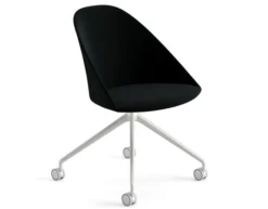 The Cila polypropylene side chair is offered with either a chromed or powder-coated aluminum swivel trestle base. Optional casters (wheels) can also be specified. The shell is fully upholstered in your choice of a variety of fabric or leather options.