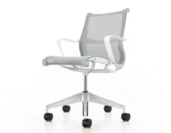 The Cila polypropylene side chair is offered with either a chromed or powder-coated aluminum swivel trestle base. Optional casters (wheels) can also be specified. The shell is fully upholstered in your choice of a variety of fabric or leather options.