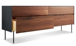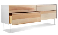 Sometimes we fall hard for a good mix of materials. Like beautiful, warm wood meeting the cool, smooth toughness of steel. The Clad series marries wood drawers and doors with a powder-coated steel side, top and legs to form an alluring union. Integrated groove pulls and soft closure mechanisms on all doors and drawers.