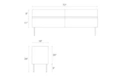 72″ w | 18″ d | 29″ h | legs: 9″ h | top drawers: 8″ h | bottom drawers: 11″ h