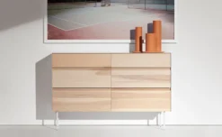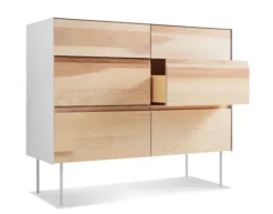 Sometimes we fall hard for a good mix of materials. Like beautiful, warm wood meeting the cool, smooth toughness of steel. The Clad series marries wood drawers and doors with a powder-coated steel side, top and legs to form an alluring union. Integrated groove pulls and soft closure mechanisms on all doors and drawers.