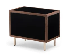 Classon Bedside Chest transcends time, its modern form featuring rich detailing that nods to a more traditional American aesthetic. Polished bronze drawer pulls and legs elegantly complement the cabinet body. Available in American black walnut, American white oak, or European Ash in a range of finishes; with painted HDF in a choice of colors with a satin matte or gloss finish.