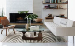 In the early 1940s, Charles and Ray Eames experimented with wood-molding techniques that would have profound effects on the design world. Their discoveries led to a commission from the U.S. Navy in 1942 to develop plywood splints, stretchers, and glider shells molded under heat and pressure. After World War II, they adapted the technology to create high-quality chairs that could be mass-produced. The process eliminated extraneous wood, which reduced the weight and visual profile of the chair and established a basis for modern furniture design. A truly comfortable chair that’s suitable for businesses and homes. The chair is in the permanent collection of New York’s Museum of Modern Art. Time magazine named it the Best Design of the 20th Century.