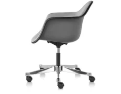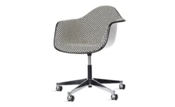 The Eames Task chair is an extension of the existing Eames Shell Chair Family, offering select shell and upholstery combinations on a five-star base. The arm shells are a single-piece molded plastic or fiberglass shell with waterfall edges and available upholstery options. Shell color and upholstery options mirror the existing Eames Molded Plastic and Fiberglass Arm Chair portfolio. Upholstery with textiles or leather for indoor use only.