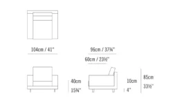 elle standard armchair: 41″ L | 37.75″ d | 33.75″ h | seat: 15.7″ h