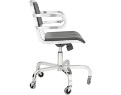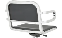 Before he died at the age of 90, Ettore Sottsass worked with Emeco on his last chair- the Nine-0. The inspiration was Sottsass’ own Navy chair in his Milan apartment-but this time with a soft polyurethane seat and back and with or without the classic “Sottsass” arm.