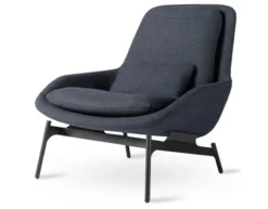 Field Lounge chair features steel and bent plywood construction with light all-over padding. The reversible seat and back cushions are filled with high resiliency foam with feather-down wrap and the included lumbar pillow is filled with feather-down.