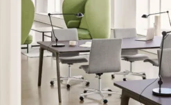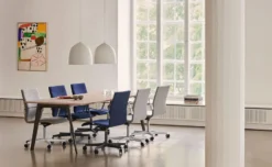The new, extended seat delivers a more natural sitting posture, while the upgraded tilt mechanism and adjustable seat height better respond to different body types and activities. Angled armrests tuck neatly under tabletops. And multiple base options, including a new a four-star fixed base, come in a range of finishes for total customization. Leather and textile upholstery in new colors enhance the minimalist design, which is equally at home in private spaces as in the office or a public place.