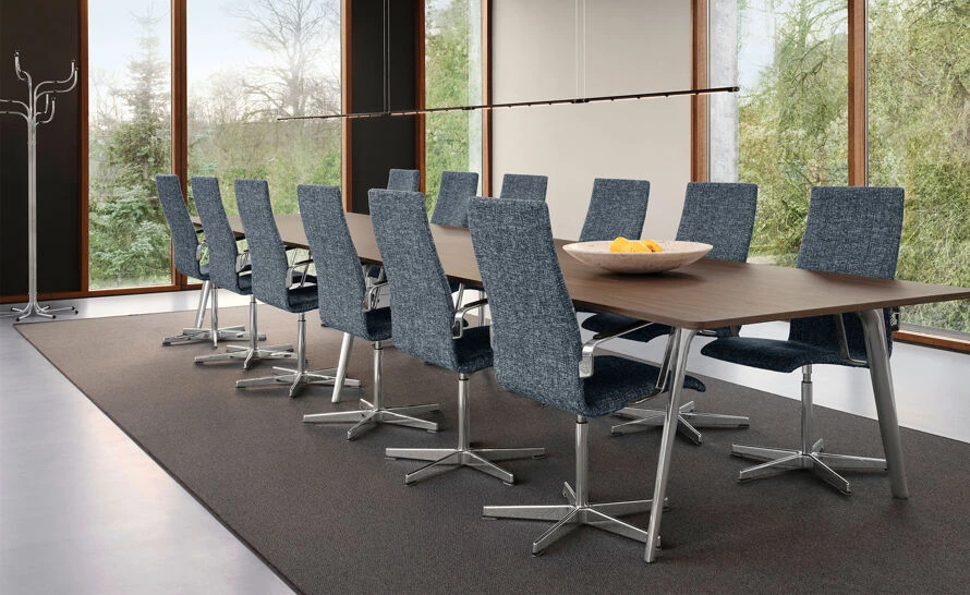 The new, extended seat delivers a more natural sitting posture, while the upgraded tilt mechanism and adjustable seat height better respond to different body types and activities. Angled armrests tuck neatly under tabletops. And multiple base options, including a new a four-star fixed base, come in a range of finishes for total customization. Leather and textile upholstery in new colors enhance the minimalist design, which is equally at home in private spaces as in the office or a public place.