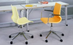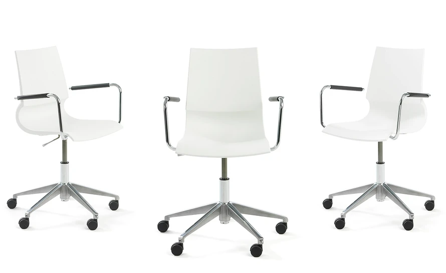 The Gigi swivel chair features an adjustable height. It is also offered as an arm chair and is available in your choice of six vibrant colors. The Gigi family is completed by the barstools and stacking chairs.