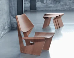 Grete Jalk’s honesty and genuine interest in every aspect of quality has made her the conscience of Danish design. Therefore, Lange Production feels very proud and honored they are able to present Grete Jalk’s best known pieces of furniture from 1963 – her molded plywood chair – the GJ Chair – and the GJ Nesting Table. They differ from any previous experiments with molded plywood by virtue of their sheer technical daring and, despite being composed of two conjoined pieces, the effect is organic and elegant.