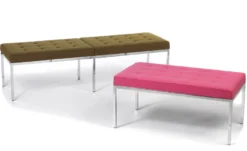 Like so many of her groundbreaking designs that became the gold standard for the industry, Florence Knoll’s signature bench is characterized by the objective perfectionism of mid 20th-century modern design and architecture. Consists of distinct, individually sewn squares of upholstery attached to a chromed steel frame. The knoll bench has a versatile aesthetic which is Ideal in both formal and informal settings.