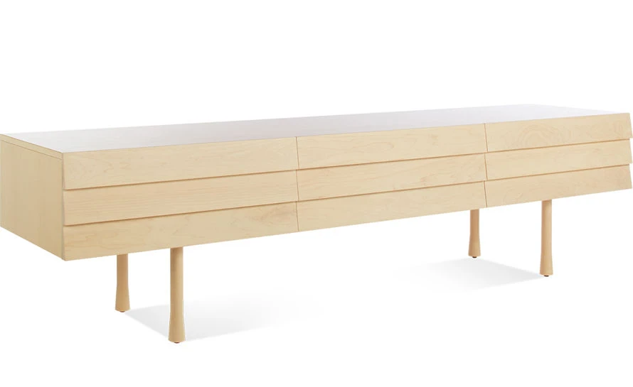 Overlapping wood drawer and door fronts give the collection its name, while the white washed maple finish and scene stealing legs bring the visual charisma. The Lap Collection includes dressers and cabinets in a variety of sizes and options.