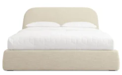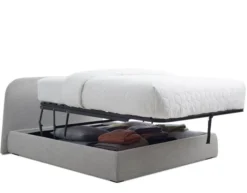 Sleep well knowing that you are on top of your storage. Literally. With a piston driven mechanism that lifts the entire mattress, the Lid Storage bed provides an inconspicuous spot for whatever needs to be stashed below. Storage compartment is lined to minimized dust and keep items off of floor surfaces. Available as a platform bed or with a rounded fully upholstered headboard.