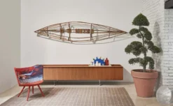 A product family based on the development of Lochness, introduced in 2014. A cabinet with flap door in lacquered or in oak veneer, conceived for living areas and the office; it is available with inner shelves and with or without inner fixed drawers positioned on the right side. As a completion, an optional tray sliding on the top of the element is also available (please call to specify).