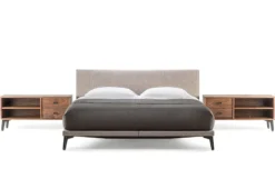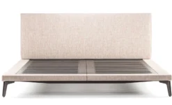 The McQueen Bed, originally launched in 2011, has been reissued for 2016 with a taller headboard. Strong, elegant and down-to-earth, this bed has beautiful detailing throughout. An angular upholstered body and tall headboard rests upon cast iron legs.