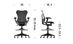 with arms: 30″ w | 25″ d | 55.25″ h max | seat: 23.5″ – 33.5″ h | 18.5″ d
