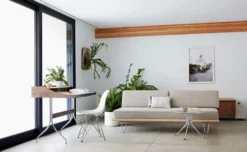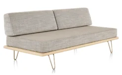 The Nelson Daybed is a versatile combination of sofa and bed. While it offers a surface for a moment of relaxation during the day, it is ideal as a lean, comfortably cushioned bed with removable back or side bolsters. Designed by George Nelson in 1950, it brought a minimal and honest aesthetic to interiors then. Today, its slender, beveled edge wood frame fits effortlessly into contemporary homes and offices.