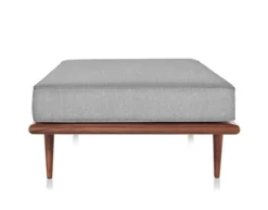 The Nelson Daybed is a versatile combination of sofa and bed. While it offers a surface for a moment of relaxation during the day, it is ideal as a lean, comfortably cushioned bed with removable back or side bolsters. Designed by George Nelson in 1950, it brought a minimal and honest aesthetic to interiors then. Today, its slender, beveled edge wood frame fits effortlessly into contemporary homes and offices.