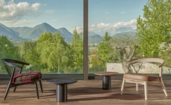 The Newood Relax Light chair, by BrogliatoTraverso, is an elegant interpretation of the Newood chair, but this version is lighter due to the elimination of the eight rods that characterized the original backrest.