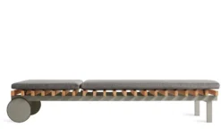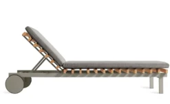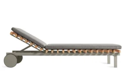 Inspired by the marine world of docks, decking and boat details, Blu Dot’s designers brought the warmth of wood into their outdoor assortment through the Perch Collection. The unique construction is a layering of a rigid aluminum base, teak wood slats and a slim Sunbrella upholstered cushion. Despite the use of three materials, a light and airy appearance is achieved through careful use of each material’s strengths. With striking silhouettes and a just-right recline, Perch is the perfect blend of beauty, utility and comfort.