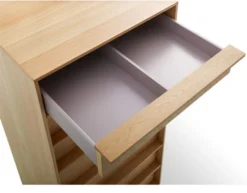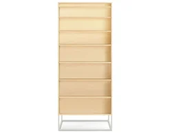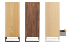 The Rule Collection serves up well considered planes and angles that are ready to slay clutter in any room. Deep set drawer fronts, detailed by a wood pull, reinforce the linear design and create a seductive shadow line. Dusk-colored drawer and door interiors provide a surprise dose of color while a square steel base ties it all together to form an elegantly, uncomplicated form. Available in six shapes suited for any room in the home or office. All with soft close drawers and doors.