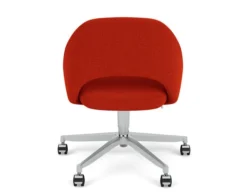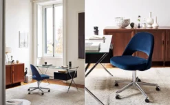 In his groundbreaking collection of 1957, Eero Saarinen transformed executive seating into a fluid, sculptural form. Recognizing the importance of user comfort, Saarinen became the first to construct a chair shell from fiberglass, a pliable material that flexes in response to body weight. The chair is available with and without arms, and features metal or wood legs, or a swivel base. The armless chair with a plastic back, ideal for café applicatons, is a recent reintroduction.