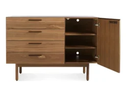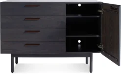 Beautility! The Shale collection offers layers of clean details. Solid wood and full grain leather pulls add storage panache and practicality to the bedroom, living room or dining room. Door units feature adjustable shelves and wire management holes.