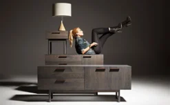 Beautility! The Shale collection offers layers of clean details. Solid wood and full grain leather pulls add storage panache and practicality to the bedroom, living room or dining room.