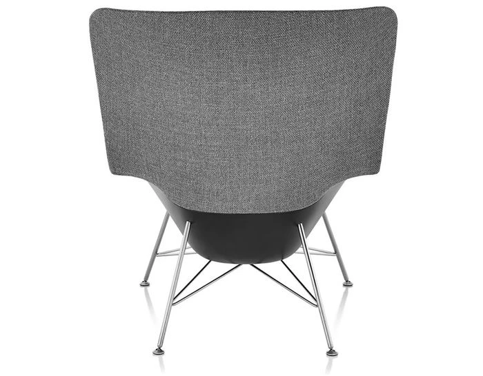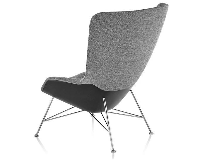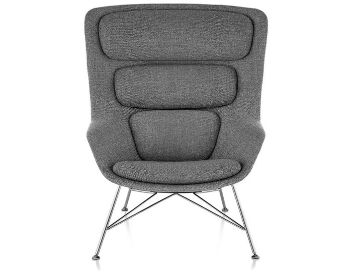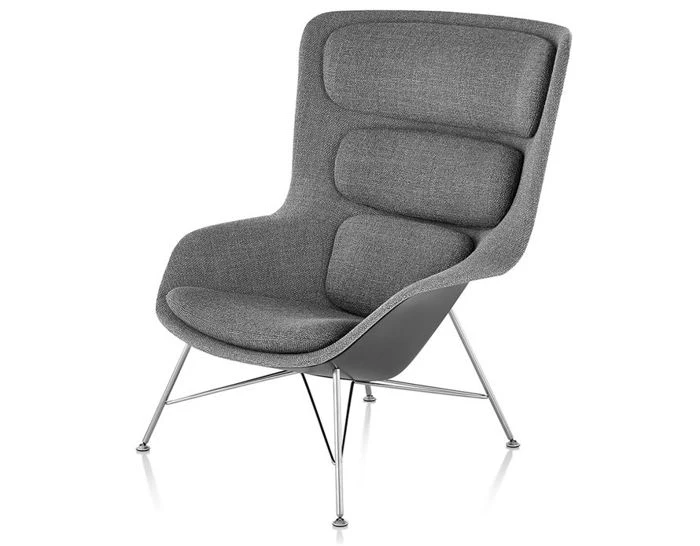 A rigid outer shell provides the foundation of the Striad collection. The Inner shell is made with a combination of natural fibers, such as hemp, flax, jute, and sisal with thermoplastic polymers. The fabric is layered with individually upholstered dual-density foam cushions provide the softness people expect of a lounge chair. The shell and cushions can be specified in contrasting textiles, or the same textile for a consistent look.