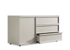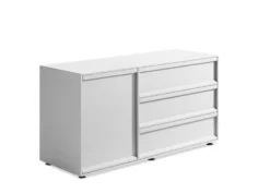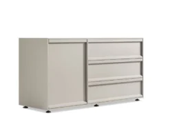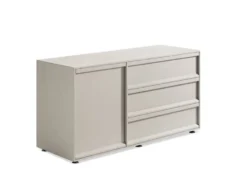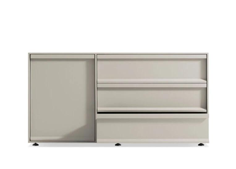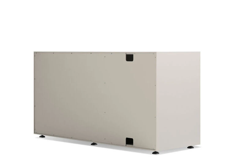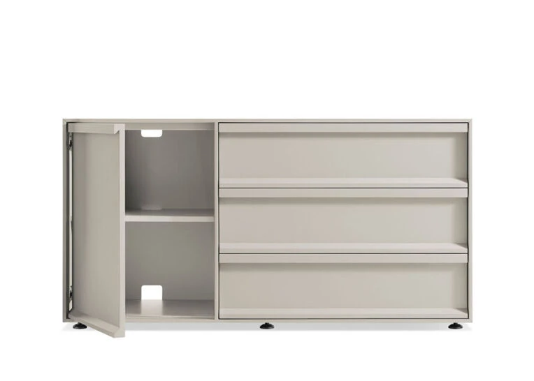 We would not give it this name if we did not believe it to be true. Tranquil staple. Crisp lines and unassuming relief pulls conspire to keep the action behind soft close drawers. A matte painted finish in muted tones delivers serenity and sets up a streamlined storage solution for the living room, bedroom and office.