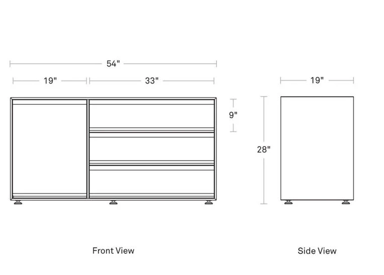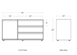 54″ w | 19″ d | 28″ h | drawers: 9″ h