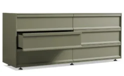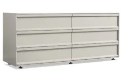Uncomplicated storage for messy times. Beveled relief drawer pulls are set off by a matte painted finish. Soft close drawers keep the action smooth and serene.