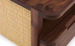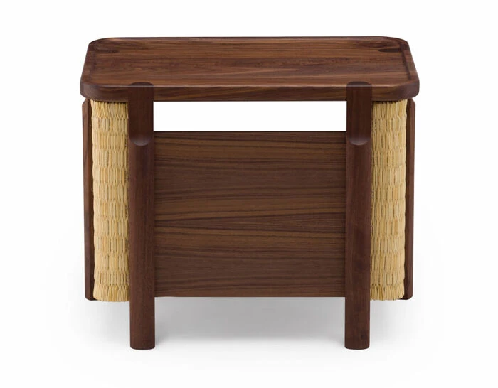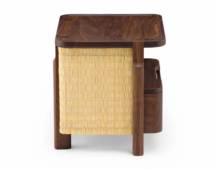Crafted from solid timber and junco, the Twenty-Five Bedside Chest is the perfect companion for the Twenty-Five Bed. The side panels are woven on a loom at the historic Portuguese basket-making workshop Toino Abel before being applied to the beautifully detailed solid timber frame.