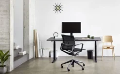 Using state-of-the-art materials and production technology, Alberto Meda orchestrates an interplay of three elements to create a new dynamic sitting experience: a flexible frame construction, an elastic cover and a stabilizing mechanism. Together these three characteristics form an ingenious construction that explores new possibilities of dynamic sitting through the interaction of flexible and rigid elements. Physix is available as an office swivel chair, in the version Physix Conference with a four-star base, or in the functionally and aesthetically reductive version Physix Studio.