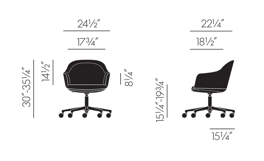 30″-35.25″ h | 24.25″ w | 22.25″ d | seat: 15.25″-19.75″ h
