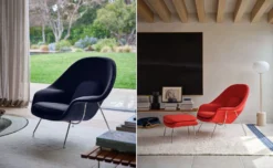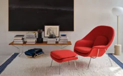 With its polished chrome, black or gold plated base and frame upholstered in fabric over a fiberglass shell, the Womb chair is designed to facilitate a relaxed sitting posture, providing emotional comfort and a sense of security – hence the name “Womb.” One of the most celebrated modern furniture designs, the Saarinen Womb chair is truly a chair you can curl up in.